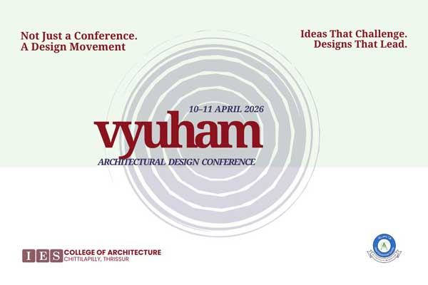 IES College of Architecture is organizing the Design Conference Vyuham 2026 on 10th and 11th April 2026, focused on celebrating and critically engaging with student-driven architectural design work. The conference provides a platform for architecture students to present their design ideas, conceptual thinking, and spatial solutions through design papers.